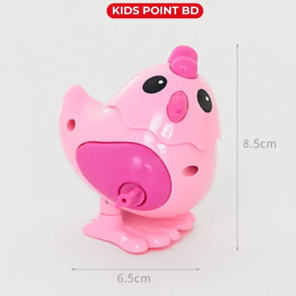 এই খেলনাটি সম্পূর্ণভাবে ক্লকওয়ার্ক মেকানিজমে চলে, তাই এতে কোনো ব্যাটারি বা চার্জের প্রয়োজন নেই। খেলনার পাশে থাকা চাবিটি কয়েকবার ঘুরালেই ছোট্ট মুরগিটি আনন্দের সাথে লাফাতে লাফাতে সামনে এগিয়ে চলে।