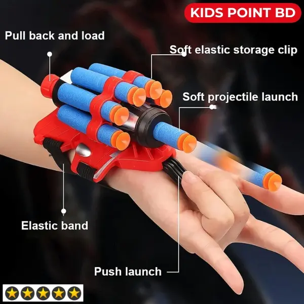 এই Spiderman Bullet Launcher Toy শিশুদের কল্পনার জগৎকে বাস্তবের মতো অনুভূতি দেয়। গ্লাভসটি হাতে পরে স্পাইডারম্যানের মতো ওয়েব-শুটিং অ্যাকশন উপভোগ করা যায়।