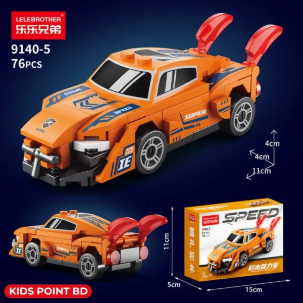Super Sports Car Building Block Toy Set শিশুদের জন্য একটি আধুনিক, মজাদার ও শিক্ষামূলক DIY খেলনা। এই সেটের প্রতিটি ব্লক এমনভাবে ডিজাইন করা হয়েছে, যাতে শিশুরা সহজেই বিভিন্ন ধরনের রেসিং কার, স্পোর্টস কার ও অফ-রোড গাড়ি তৈরি করতে পারে।